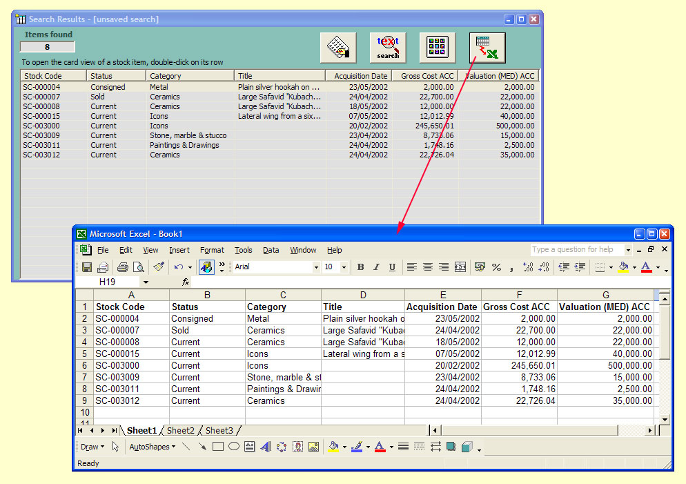 A Search Results form and the export of its contents into a Microsoft® Excel spreadsheet so that you can manipulate the presentation of your stock data as you see fit